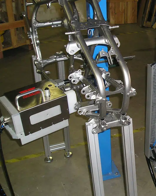 Une demande classique en apparence, car il s’agit de marquer un numéro de châssis VIN sur les cadres de moto, de scooter et de quad.