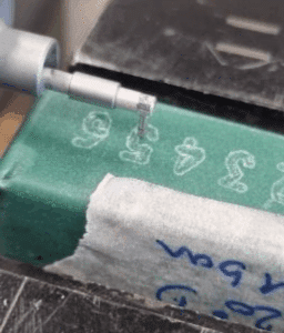 Pour l’un de nos clients du secteur aéronautique, spécialisé en fonderie de précision, l’objectif était de trouver une solution pour identifier les modèles en cire sans risquer de les abîmer.
