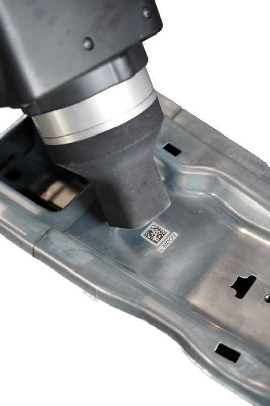 Les données sont scannées par l’opérateur, puis le QR code est marqué directement au laser sur la face usinée ou sur une surface peinte.