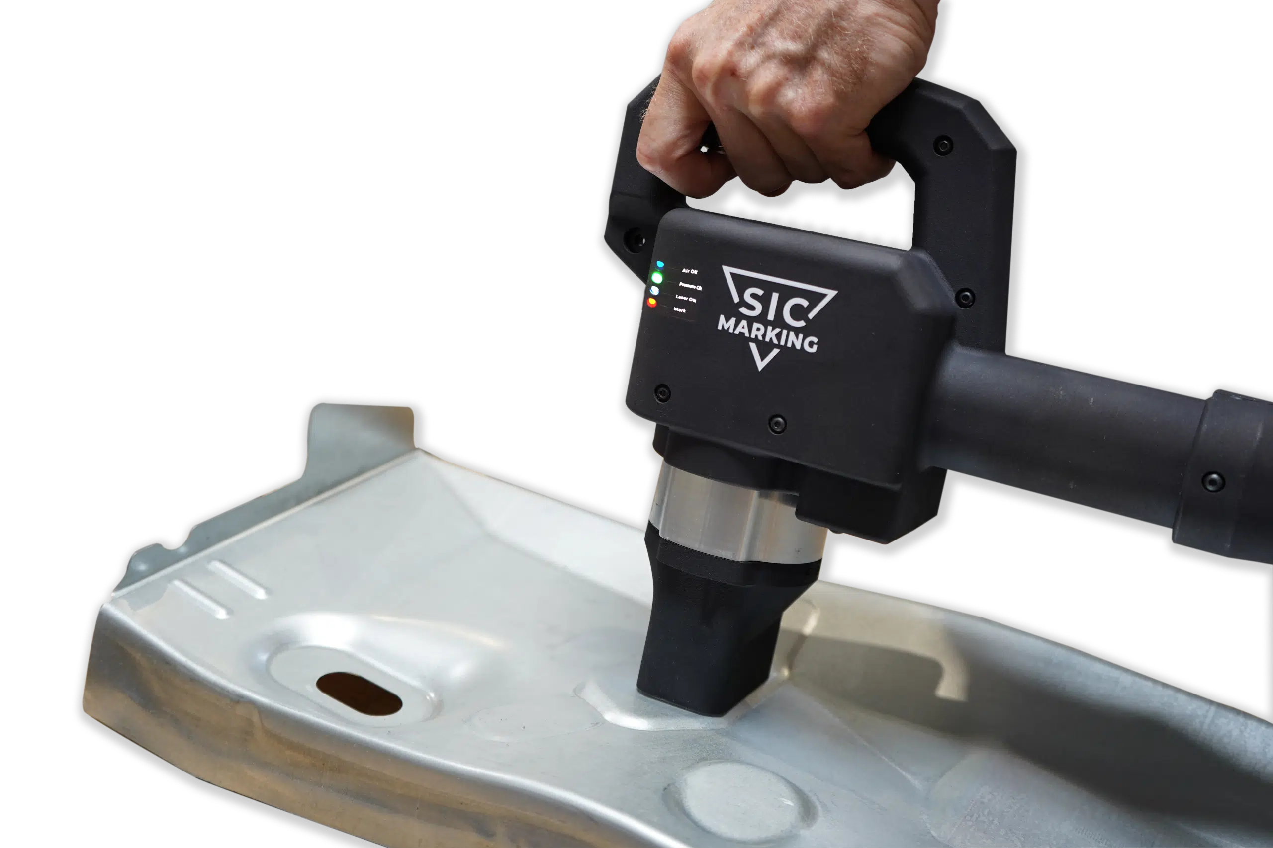 L’enjeu était donc de fiabiliser durablement le marquage, sans complexifier le travail de l’opérateur ni imposer une installation lourde sur des pièces volumineuses.