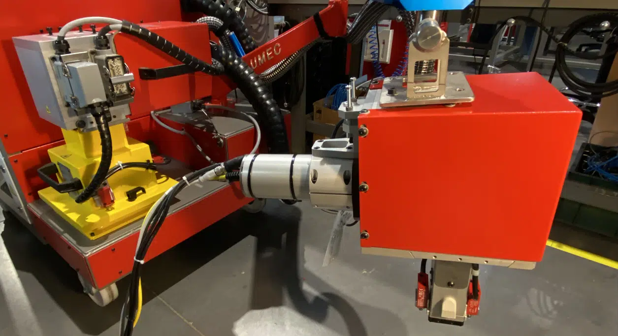 La machine F.I.T. Laser est composée d’un laser i104 easy. Notre machine de marquage laser l104 easy a pu être intégrée grâce à un fourreau léger, facile à placer sur un bras de cobot.