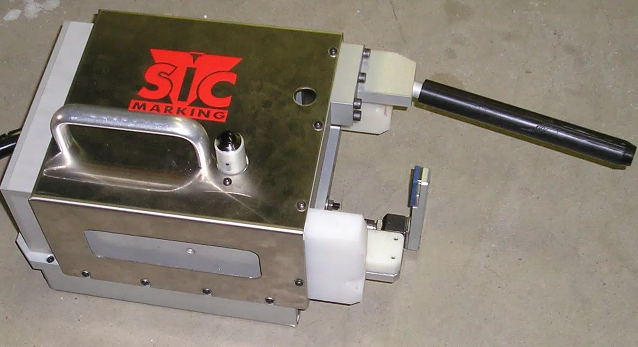 Dans ce cas précis, il s’agit du développement d’une série d’outillages adaptables au pistolet de marquage de type P123. SIC MARKING propose au client un développement spécifique avec un bridage intégré (grosse mâchoire).