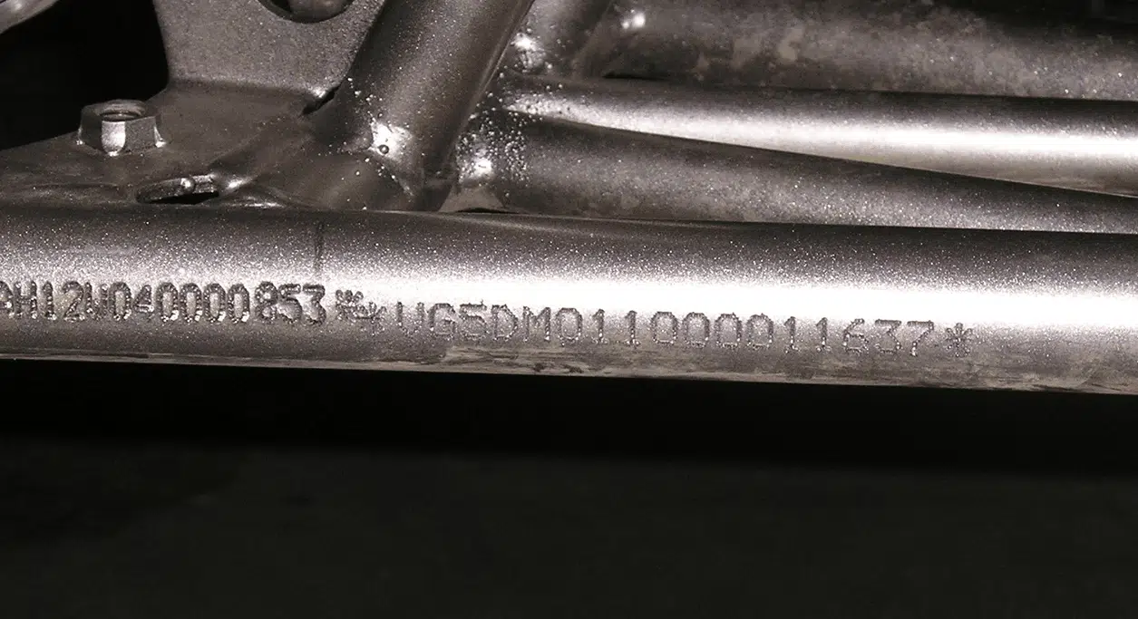 Une demande classique en apparence, car il s’agit de marquer un numéro de châssis VIN sur les cadres de moto, de scooter et de quad.