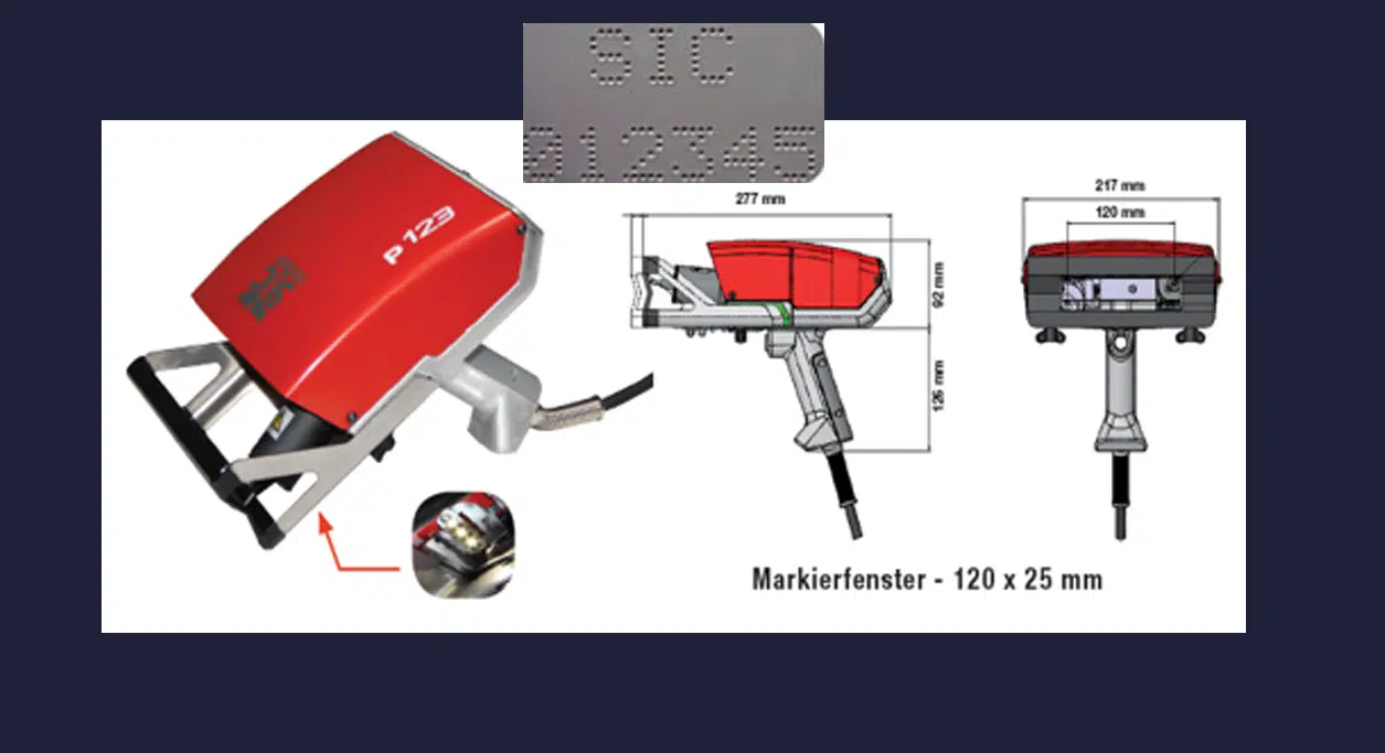 SIC MARKING a proposé à cette marque de voiture de luxe une solution sur-mesure. Il s’agit du pistolet P123 de notre gamme portable standard muni d’une façade spécifique pour venir se fixer sur la zone de marquage. Il s’agit d’un produit flexible que l’on peut emmener n’importe où dans l’usine et qui permet donc un marquage hors flux de production standard, en fin de ligne de production par exemple.
