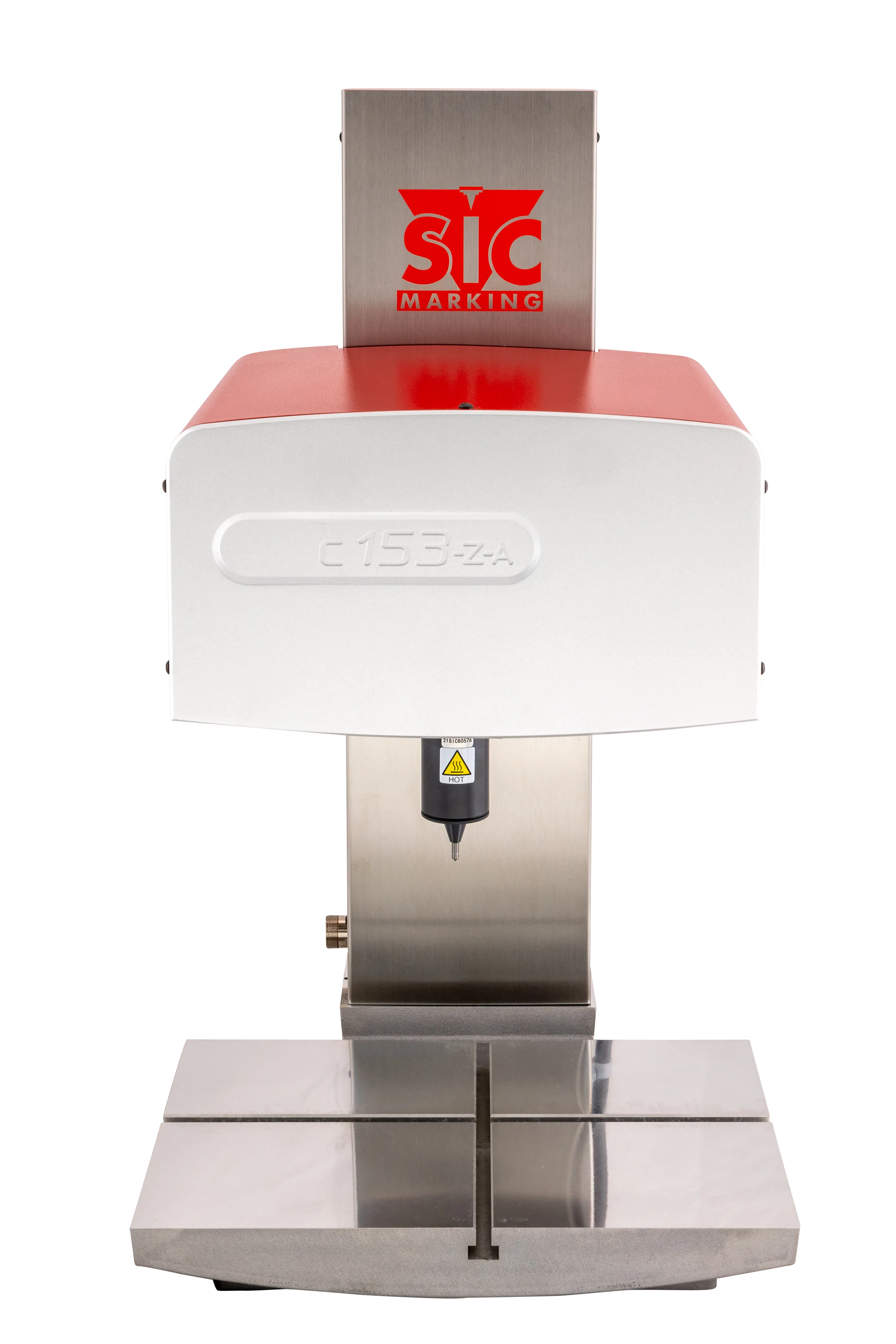 La C153 ZA est une MACHINE DE MARQUAGE PAR MICRO PERCUSSION SUR COLONNE, c’est à dire coulissant sur un axe vertical pour ajuster la position de la tète de marquage. Elle est particulièrement adaptée pour le marquage de petites ou moyennes pièces, que l’on vient placer directement sous la tête de marquage.