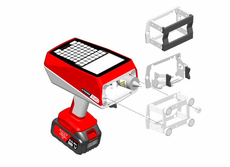 L’E-MARK EVO est une machine de marquage portable, sans fil, tout-en-un, à micro percussion, capable de marquer tous types de matériaux, du plastique à l’acier traité, jusqu’à 62 HRC.