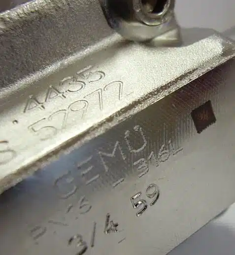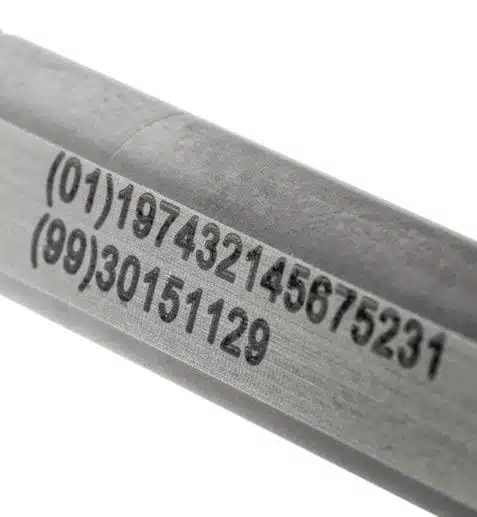 Le marquage alphanumérique consiste à marquer une succession de chiffres ou de lettres. Cette séquence de caractères est utilisée pour l’identification des pièces lorsqu’il n’y a pas de vérification automatique et que le marquage est utilisé en relecture simple directement par l’opérateur durant le process de fabrication.